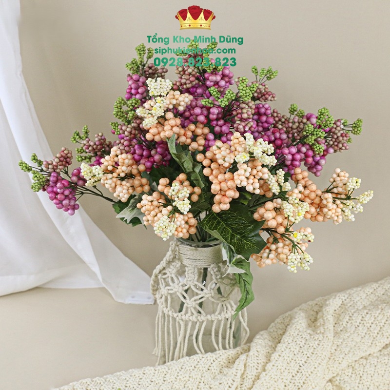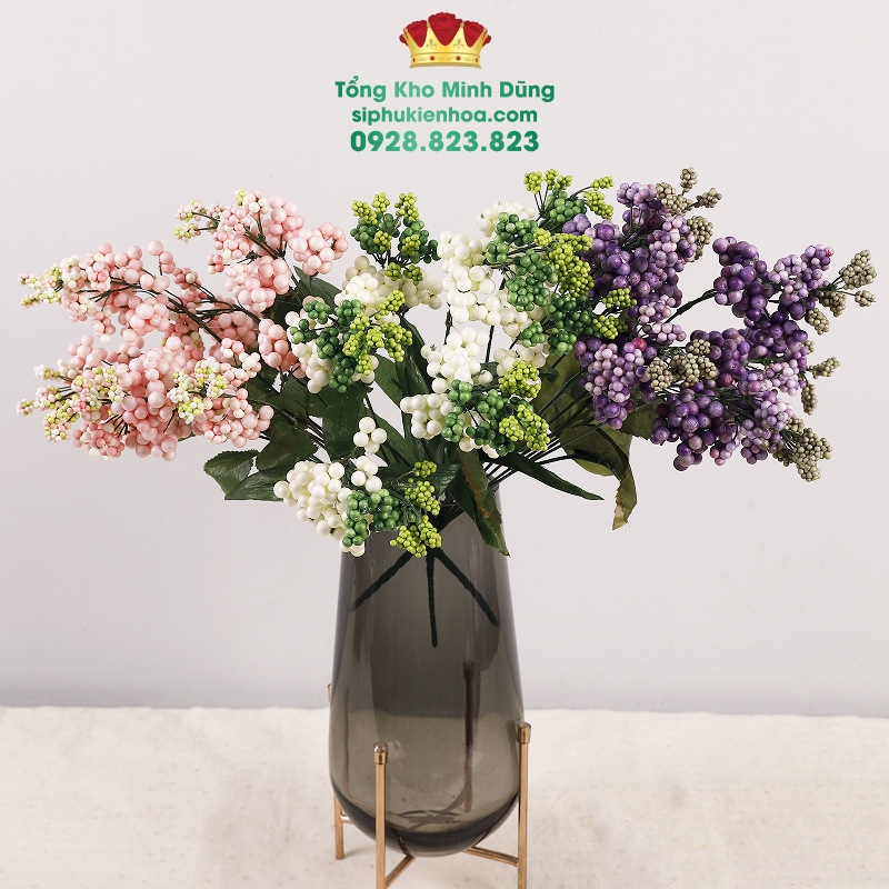 - Cắm xen kẽ chùm bi xốp với hoa tươi hoặc hoa sáp để tạo điểm nhấn nhẹ nhàng và nổi bật.