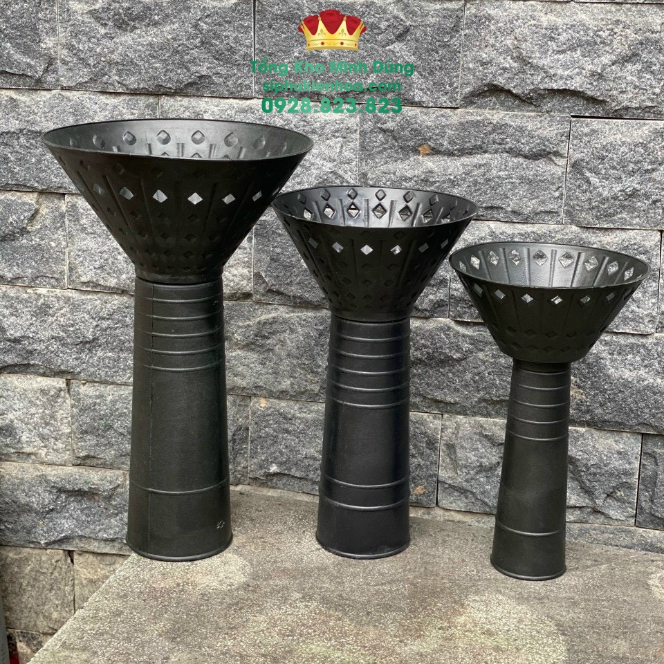 - Làm từ nhựa cứng hoặc kim loại chống thấm, bền đẹp và an toàn cho cả hoa tươi, hoa sáp và hoa giả.