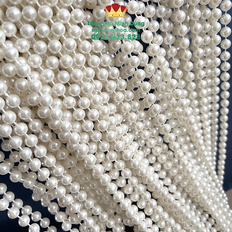 - Tạo các vòng hoa treo, dây trang trí tường hoặc bàn tiệc với dây ngọc trai cố định.