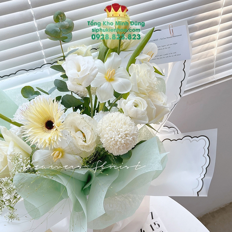 - Ứng dụng đa năng: Phù hợp để gói hoa tươi, hoa sáp, trang trí quà tặng và không gian sự kiện.