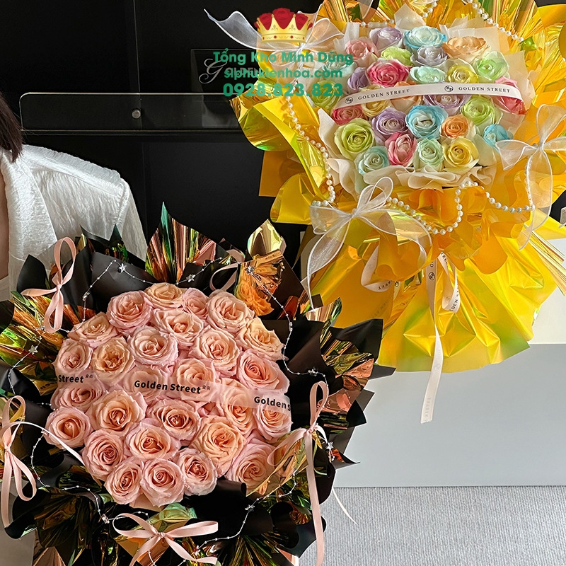 - Không thấm nước, bền đẹp: Đảm bảo hoa được bảo vệ tốt hơn.