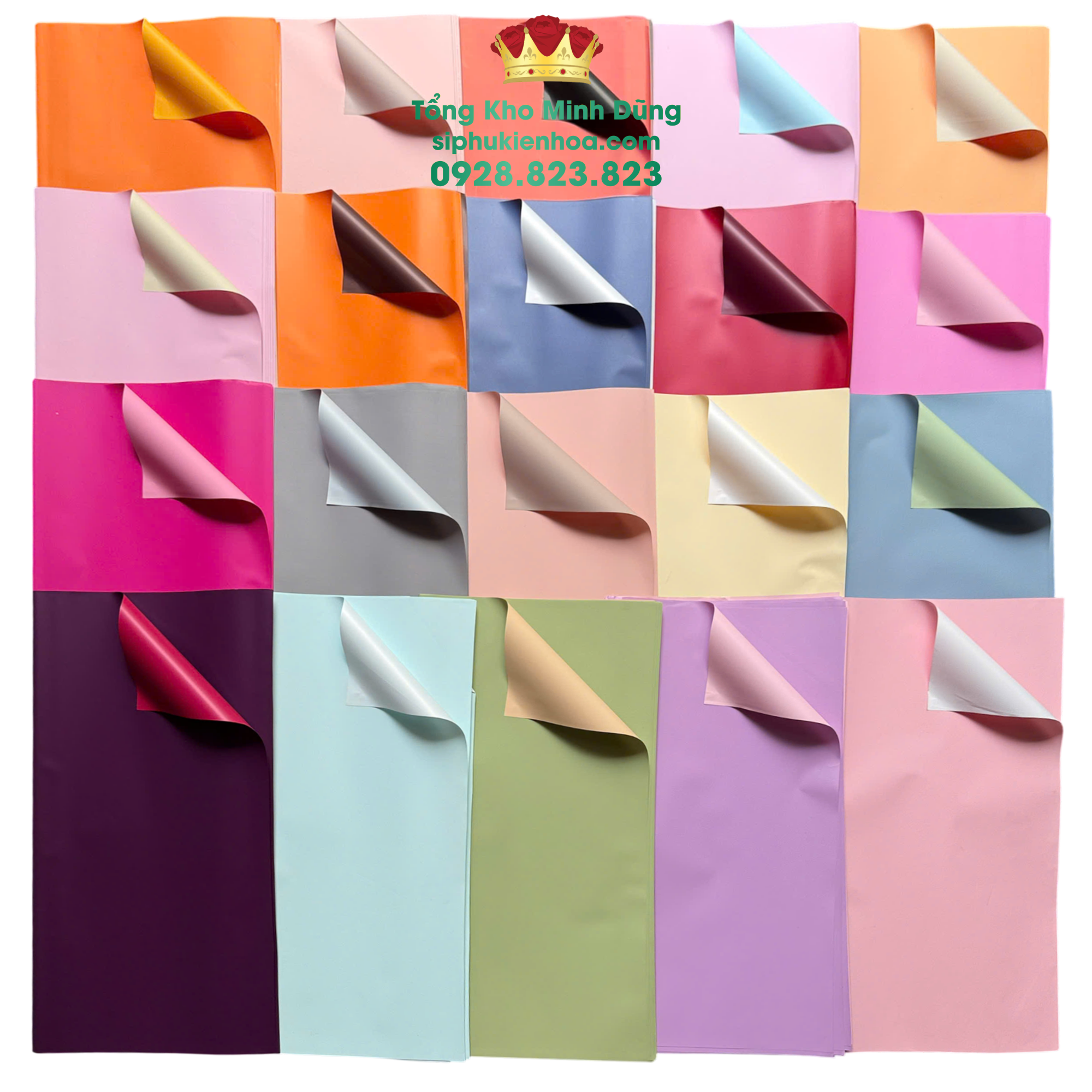 Trong lĩnh vực hoa tươi và quà tặng, giấy 2 mặt gói hoa cao cấp luôn được ưa chuộng nhờ sự tiện lợi và tính thẩm mỹ vượt trội. Với kích thước chuẩn 58x58cm, sản phẩm thích hợp để gói nhiều loại bó hoa, giỏ quà hay trang trí các vật phẩm trong sự kiện.