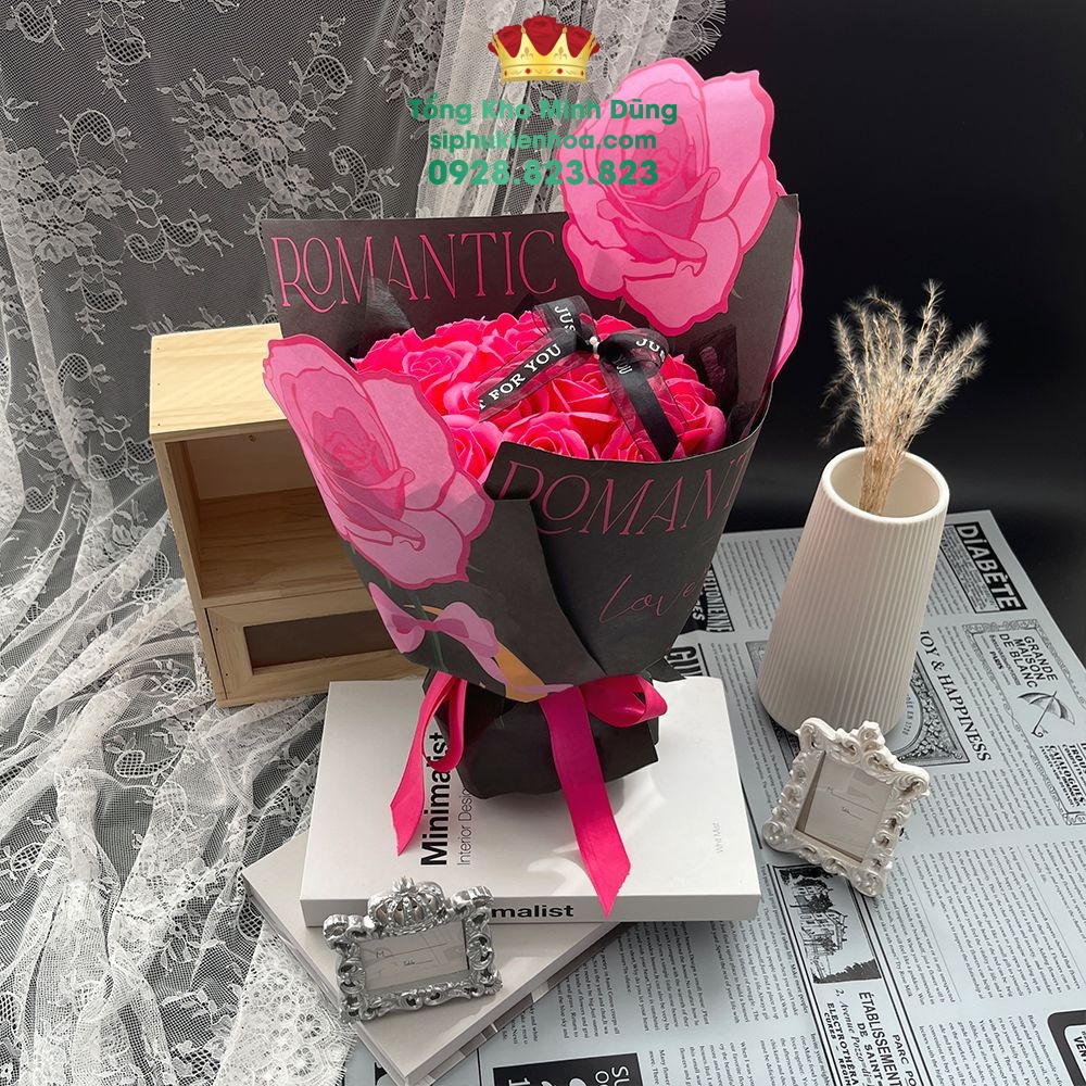 - Thiết kế nổi bật: Họa tiết hoa hồng tinh tế, thời thượng, phù hợp với xu hướng gói hoa hiện đại.