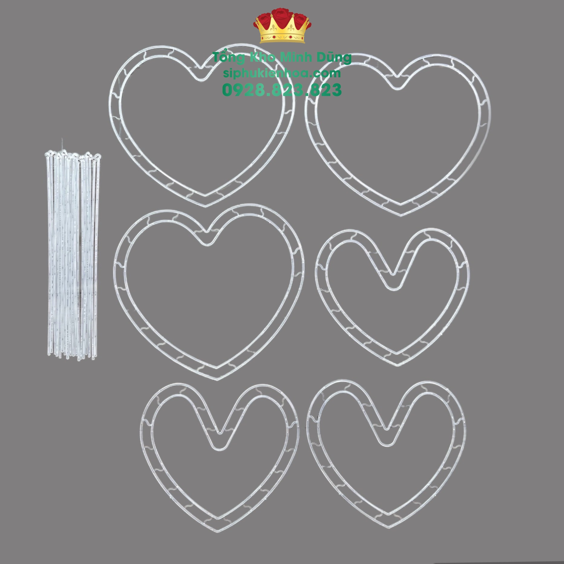- Bao gồm 3 khung tim nhỏ và 3 khung tim lớn, phù hợp với nhiều kích thước bó hoa.