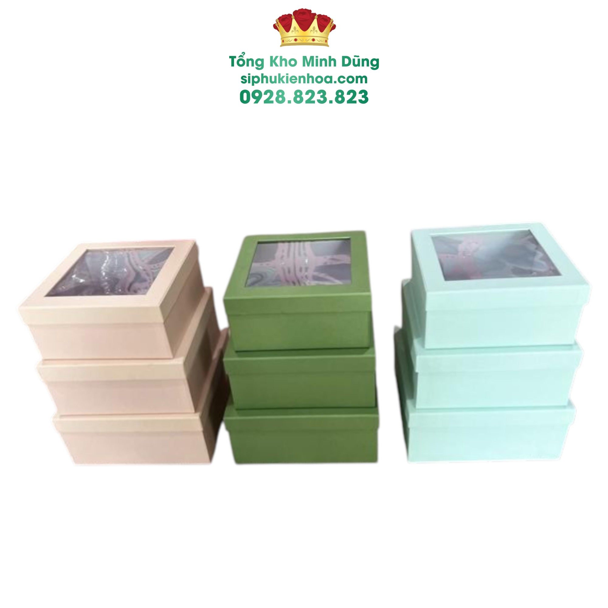 Set 3 Hộp Vuông Nắp Mika là dòng hộp cao cấp với thiết kế tinh tế, giúp tăng thêm giá trị cho quà tặng, trang trí hoa hoặc trưng bày sản phẩm. Với kiểu dáng vuông vắn, nắp mica trong suốt sang trọng, đây là lựa chọn hoàn hảo để làm hộp hoa, hộp quà tặng cao cấp hoặc decor sự kiện.