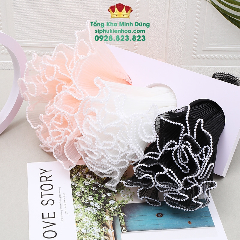 Voan Gợn Sóng Đính Hạt Cao Cấp